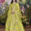 Are you looking for a special lehenga to make your next function memorable? This one is a royal Zardozi embroidered set made of silk fabric, along with sequin work in yoke portion (choli). The round shape neckline makes it a suitable pick for all body types.