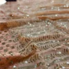 Looking for a dazzling saree with dazzling sparkles? Look no further than this alluring peach saree. This saree is a perfect fit for weddings, festivals, gatherings etc. Made from luxurious georgette fabric this gleaming saree showcases heavily intricate sequence work that glimmers in the light and makes it a showstopper of any event. The edges of the border is donned with lacework which elevates the splendid look of the outfit.
