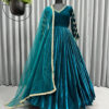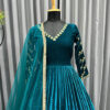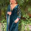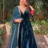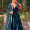 If you wish to wear something Plain and yet look gorgeous in that. So we have a found a cure for you. This Arabian Green Velvet gown has only minimal work on its V neck and comes along with a net dupatta which provides you an elegant look.