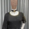 Add a bit of sparkle and shine to your wardrobe with this Black designer anarkali suit which is a right fit for parties, grand ocassions or casual wears. Crafted from breathable fabric, this stunning piece features embroidery in beads around its scoop neckline and sleeves.This set also comprises of a pant and a simple dupatta.