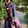 Enhance the beauty of your traditional collection by adding this gorgeous Cincinnati Blue coloured silk saree to it. It has intricate work of Paisley print which will give you a breathtaking look. The saree comes with designer brocade blouse.