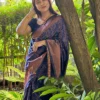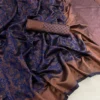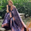 The stunning Navy Blue Colour Saree Comes With Heavy Brocade Blouse