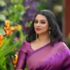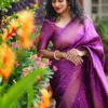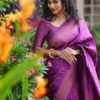The stunning Purple Colour Saree Comes With Heavy Brocade Blouse