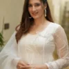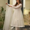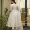 Revamp your wardrobe with our off white anarkali suit that comes in full sleeves. The unique design with a matching dupatta very well compliments the Indian dress.