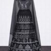 Adorable Pakistani look in black embroidered lehenga and shimmer choli is what a great night party calls for. Carry the dupatta in an elegant style to maximize the style.