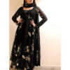 Look and feel beautiful with in this uniquely designed Black Anarkali Dress. This dress has a pentagon style neck and comes along with a simple dupatta which has floral borders and same printed pants.