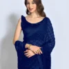Ethnic Race exclusively brings this bollywood style gleaming blue saree made from premium quality to you. Ace your look with elegance and glamour wearing this gorgeous saree. Made from luxe georgette fabric this saree is loaded with heavy and delicate sequins work that adds a touch of sparkle and grace. This saree comes with a banglory silk blouse piece. This beautiful saree is a perfect choice for any wedding or grand event.