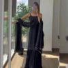 Breathtaking Black Color Designer Kurti With Sharara & Dupatta