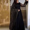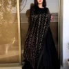 Our Breathtaking Black Georgette Anarkali Gown is designed to make you feel like a true diva. The set includes a matching dupatta with machine embroidery details.