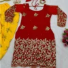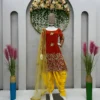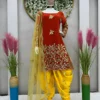 Buy Red And Yellow Blend Patiala Salwar Kameez In Zari Work