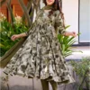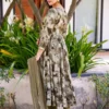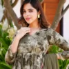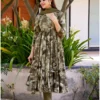 Ethnic Race’s Captivating Anarkali Suit crafted from brown muslin fabric is adorned with enriching floral prints that add a touch of elegance, making it suitable for casual occasions.