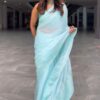 Latest Sky Blue Color Georgette Sequence Work Saree For Reception And Farewell Party By Ethnic Race