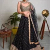 Elevate your style with the Crop Top Black Lehenga and be the showstopper of any wedding event in 2023. Buy now and get ready to shine!