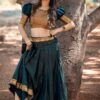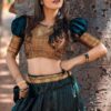 This magnificent dark green lehenga is perfect for modern Indian women who want to make a bold statement at their next festival or special occasion. The luxurious Banarasi silk and copper zari blouse are sure to turn heads, while the intricate details on the lehenga skirt will have everyone talking.