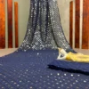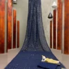 Bring the timeless elegance of mirrorwork to your wardrobe with this designer partywear mirrorwork saree in royal blue. Crafted from pure georgette fabric and embedded with tiny mirrors, this saree is especially designed for special ocassions such as engagements or farewells. It comes with a georgette embroidered blouse of similar colour.