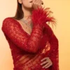 Our designer red georgette saree boasts intricate heavy sequin work that adds a hint of glamour to every step making it perfect for modern women.
