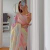 This sari is designed with a georgette fabric and has beautiful work like sequin work on the blouse. The elegant embroidery style makes the look rich and luxe. This comes in variations of unstitched or pre-stitched( including blouse) it has a fascinating appeal that makes it one of the most desired sarees online.