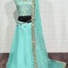 A sea green embroidered choli paired with a simple lehenga is a subtle style for your party. Suit your style with a perfect cut and pattern of the blouse.