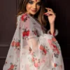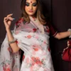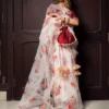 Excellent And Trendy White Coloured Floral Printed Organza Silk Saree