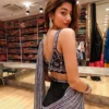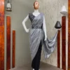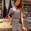 Its time to add some shimmer to your partywear collection as Ethnic race has brought you this stunning Black coloured shimmer saree so you can look gorgeous in any gathering.This beautiful saree is a combination of grey and black colour and comes along with a designer belt and an embroidered unstitched choli.