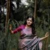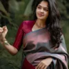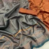 Look divinely gorgeous by wearing this Firozi silk saree which is crafted with beautiful zari work and is decorated with solid jaquard weave which provides an overall elegant look to the saree. The outfit comes along with heavy maroon brocade blouse.