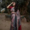 Stunning Dark Firozi Colour Saree With Heavy Maroon Brocade Blouse