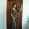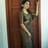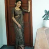 Stunning Dark Green Colour Saree Weaved With Copper Zari