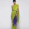 Green And Purple Colour Beautiful Pleated Designer Saree On Georgette Fabric With Digital Print