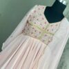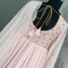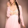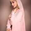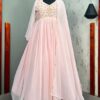 Make an adorable appearance like a princess out of a disney movie by wearing this embroideried Gown in heavenly pink shade. Stitched in a very comfortable chiffon fabric, this designer suit is studded with finest embroidery with mirror work on its chest. Comes with a matching net dupatta with lace work on its edges.