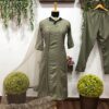 Lovely Gray Designer Suit On Natural Rayon Fabric With Flared Dupatta