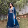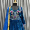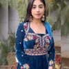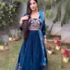 Make a statement with Luxurious blue velvet suit which is tailored with the utmost precision and made using only the best quality fabric. Elevate your look with its intricate thread embroidery on the queen neckline and heavy borders that create a stunning appeal. To complete your outfit, it comes along with a simple dupatta