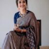 Looking for a saree that will make you stand out in a crowd? Then take a look at our Delightful Banarasi Saree in Navy Blue. The beautiful golden zari embroidery on the navy blue fabric is eye-catching and festive. The saree comes with a matching blouse piece, so all you need to do is drape it around you and you’re good to go!