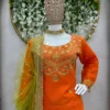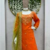 - Work: Embroidery With Sequence With 4 Side Lace Border