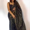 Steal the spotlight at any celebration with our partywear black saree curated with georgette material and loaded with border lace work all over the saree.