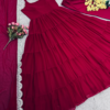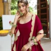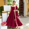 Embrace wedding season allure in our Sleeveless Pink Anarkali Gown. With its graceful flair, this gown is your ticket to effortless elegance.