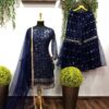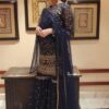 Pleasing Punjabi Sharara Suit In Navy Blue Color For Wedding Wear