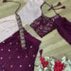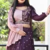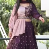 Lehenga choli for girls is crafted from purple chinon fabric and loaded with sequin embellishments and stunning motifls for a ravishing appearance.