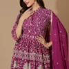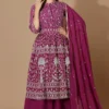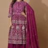 Introducing Dark Pink Sharara set for girls specially crafted for Rakshabandhan. This stunning set contains embroidered sharara dress with a dupatta, perfect to celebrate the Indian festival.