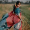 This saree is perfect for a fashionable woman who wants to stay true to her traditional roots. The Banrasi saree is a timeless classic, and this particular one is given a modern twist with its sleek Silver zari work. The matching Rama colour blouse adds a touch of elegance and completes the look.