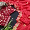 New Arrival Red Festival Saree Online Shopping For Women Made With Rangoli Silk Fabric Multi Embroidery Thread Sequence Lace Border Design.
