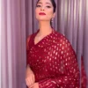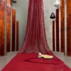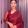 Carry a rich look in your next grand celebration by drapping this crimson red partywear sequin saree. Designed elegantly with sequence and delicate thread work in red, this attire gives an appealing lustrous look and will make you look like an epitome of beauty. Comes with an unstitched georgette shimmery blouse.