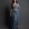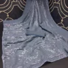 This stunning latest designer farewell partywear grey saree is studded with intricate sequence work creating an appealing shimmering effect that will grab you a lot of compliments. This saree is designed from premium fabric that ensures comfort. The alluring design and colour will make you feel confident and graceful, leaving a lasting effect with everyone you meet.