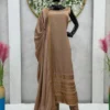 A beige salwar suit in satin silk is all you need to look graceful at any type of gathering. The satin silk fabric in a beige shade assures comfort all day long and adds versatility to the suit set.