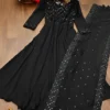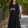 Solid Elegant Black Anarkali Suit with Hand Work Embroidery For Women