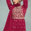 Get a breathtaking party-ready look wearing this embroidered palazzo suit set for women tailored with heavy georgette material for a comfortable fit.