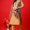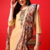 Make a style statement with Women’s kurta pants set . The kurta is made fancy rayon slub fabric with the stunning yoke design and is paired with matching pants and chanderi print dupatta.