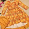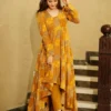 The Stylish Kurta Set in mustard yellow hue is perfectly complemented by soft and breathable muslin fabric and features a unique design that stands out making it an ideal choice for casual and office wear.