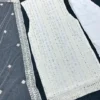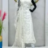 Embrace the beauty of our snowy white salwar suit adorned with exquisite mirror work. The sleeveless design offers comfort, while the mirror work makes it a relevant choice for festive occasions.