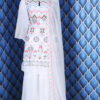 Fresh Colorful tones on your mind? Adorn this subtle white kurti with blue, pink and green embroidery in fancy, floral motifs. Head to a fun party in this garment.