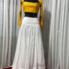 Introducing the Designer Fancy Blouse Lehenga in sunny yellow! This beautiful lehenga is made of pure silk and adorned with intricate pleating work. It’s the perfect choice for a special occasion or a festive celebration. Be the belle of the ball in this designer lehenga!